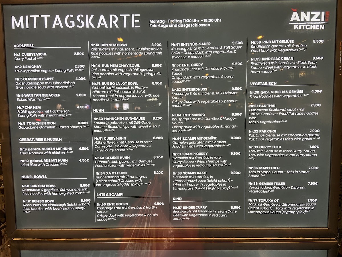 Located in the heart of Munich, Anzi Kitchen offers a vibrant culinary journey through Eastern Asia, making it a must-visit for food enthusiasts. The restaurant’s menu showcases a delightful array of dishes that never fail to impress, from their crunchy hotdogs to the authentic Hong Kong rice noodles, filled with rich "wokhey" flavors.